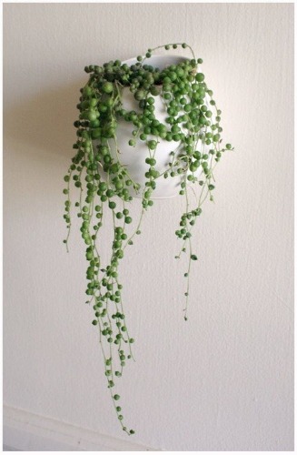 Just like a normal string of pearls, this one is the same but green. These bead-like leaves grow fast, and look very unique. They can be grown in hanging pots or baskets, or kept on shelves.