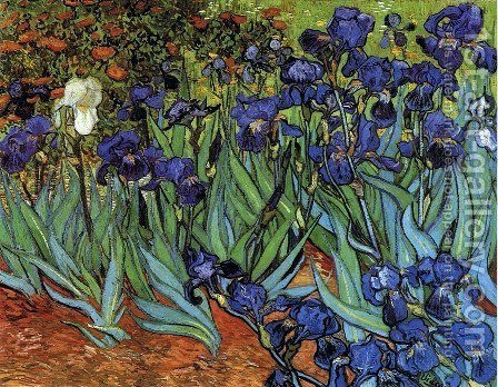 Van Gogh, in a letter describing the irises to his brother Theo, describes them as purple in ‘Field with Irises near Arles.’ If one looks at the painting today, the irises will appear blue.