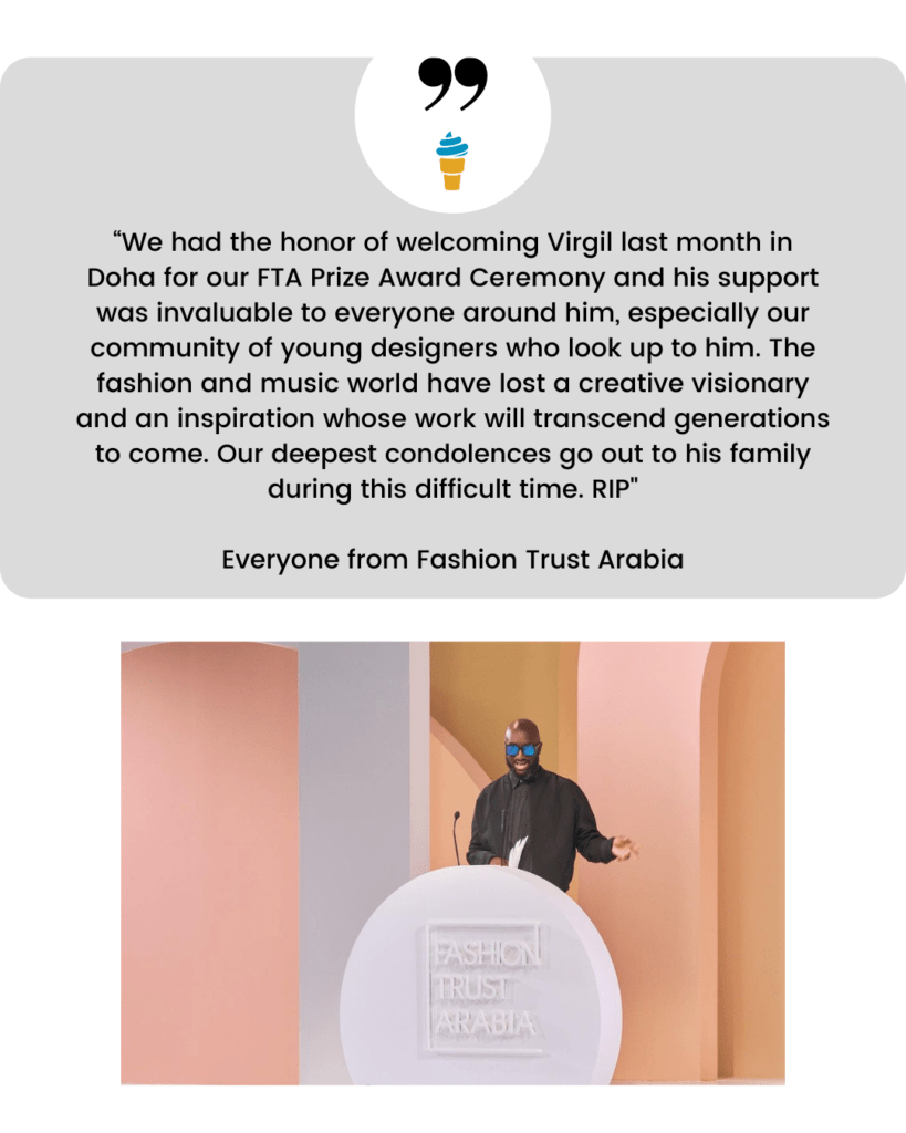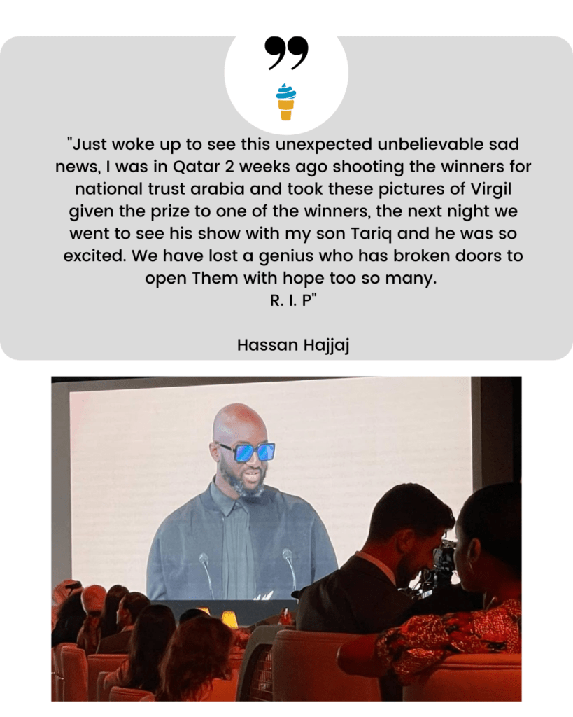 As they recall the time he was in Doha for the FTA Prize Award Ceremony, many from the Fashion Trust Arabia also felt the sadness of losing someone of Virgil’s quality who was a welcoming individual and left a mark at each place he has visited.