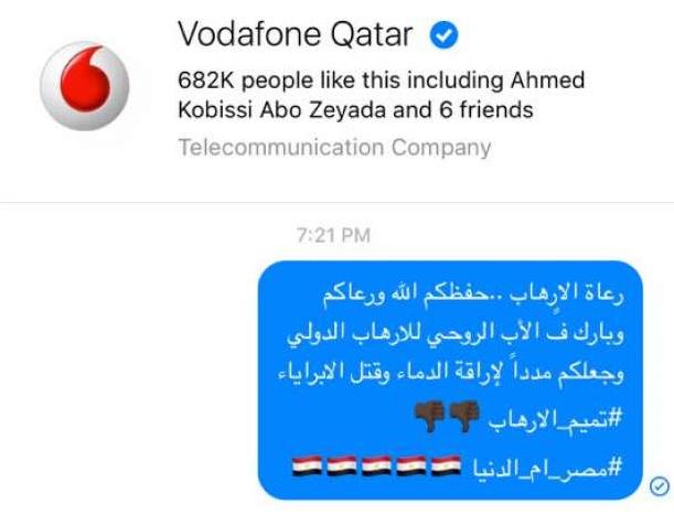 Some of the angered customers sent Vodafone Egypt messages accusing them of supporting terrorism, while others resorted to destroying their SIM cards.