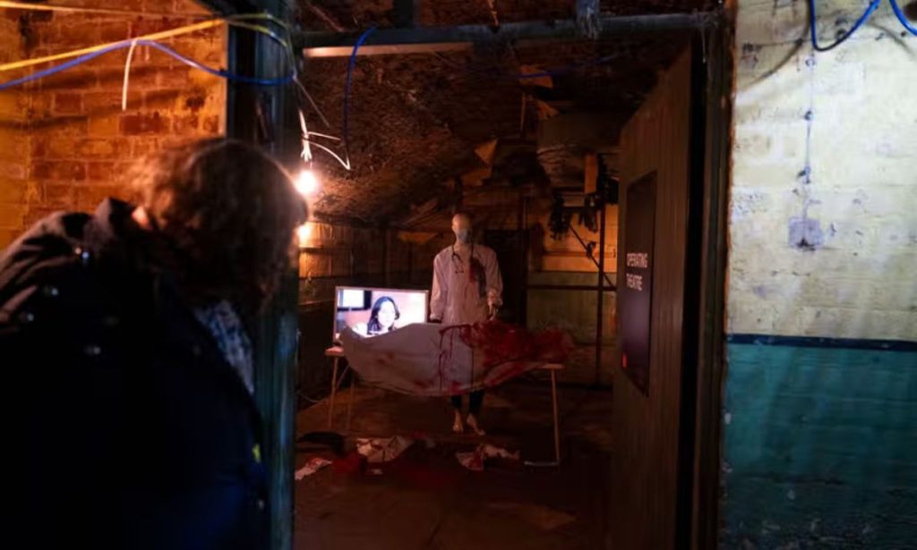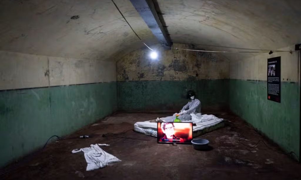 Artists have created installations that ‘allegedly’ bring to life the reality of Hamas tunnels, where the Palestinian group operates and hides hostages. They feature masked Hamas members, a foreboding claustrophobic atmosphere, and bloodshed.