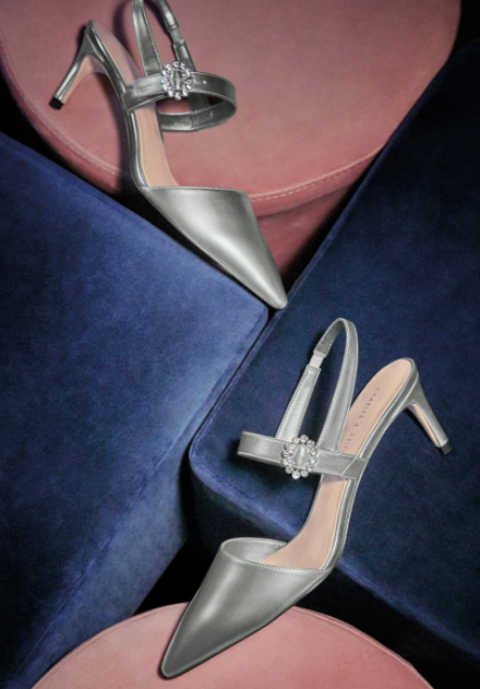 In addition, she released a shiny metallic shoe collection interrupting the season’s hottest trend, mules and kitten heels. The dazzled, crystal buckle accessorized heels are too stylish to miss out. The capsule also features summer sandals and simple slides, perfect for summer.