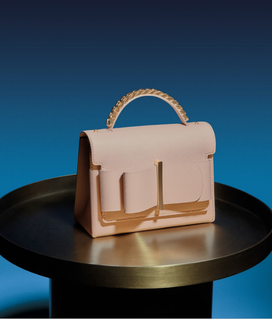 The structured top handle bags come in various shades and detailed embellishments. The collection of modern shaped bags fits the everyday woman, tailored simply yet elegantly.