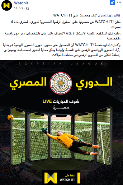 The platform will allow users to watch live games in addition to exclusive summaries and analyses. Watch iT will also produce football-related shows for fans. The new deal signifies the first time ever for Egyptian football to be broadcast on a digital platform and was pursued in hopes of securing Egyptian sports’ legacy online and to preserve copyrights.