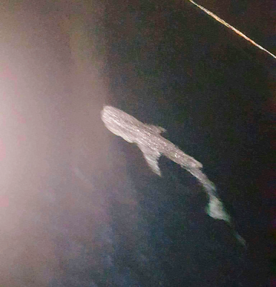 The images show what seems to be a whale shark swimming in the Red Sea.