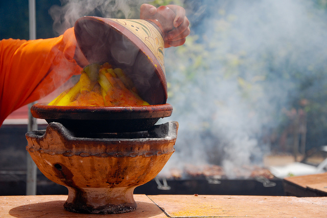 The tagine, a Moroccan dish with a conical top, has become a major part of the Middle Eastern cuisine. It’s also a versatile dish often used for both cooking and serving. The way it has been crafted and shaped allows steam to collect and run to the base.