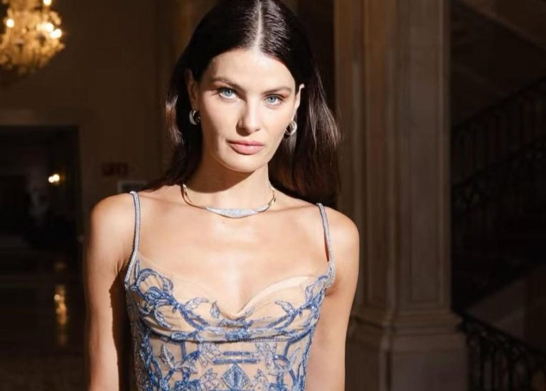 Brazilian model Isabeli Fontana lit up the red carpet for the premiere of After The Hunt in a breathtaking Syrian Yara Shoemaker creation. The sculpted silhouette hugged her frame like a glove, with delicate spaghetti straps and a sheer beige tulle base bedazzled all over in shimmering crystals. The icy blue tone highlighted her striking eyes, while the dress’s frame-hugging cut amplified its sensual elegance.