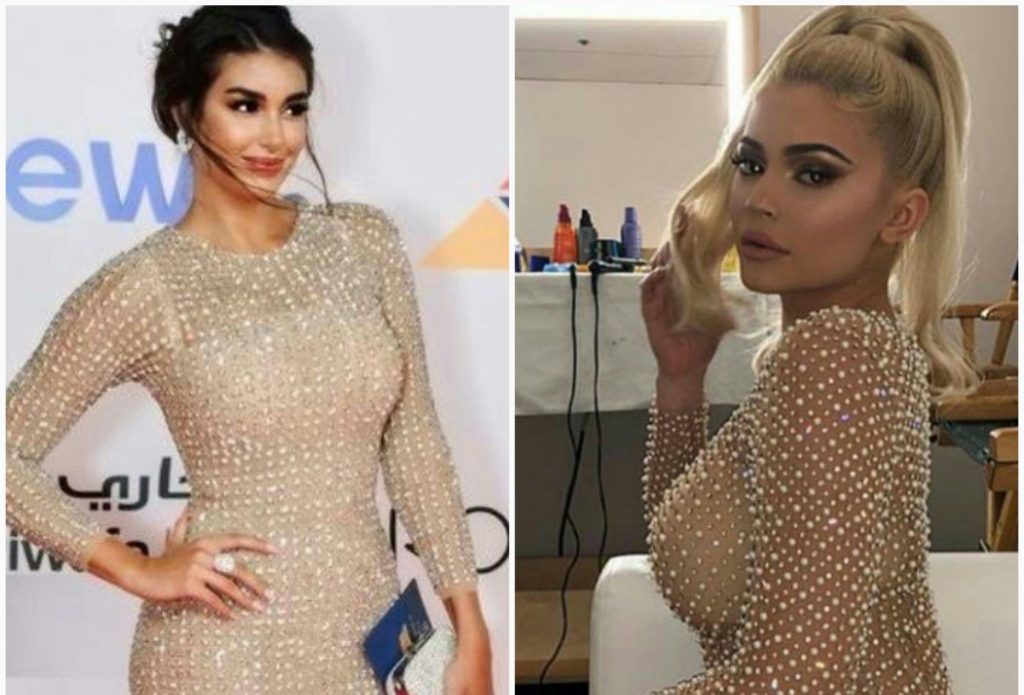One of the dresses Kylie wore is almost the same exact copy of Sabry’s gown at the Gouna Film Festival. Each lady brought a little something to the sheer diamond-covered gown, but we can’t help but ask. Who wore it better?