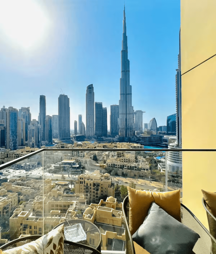 Wanna see the Burj Khalifa from your couch? Your bed? The shower? Done. This 2-bed, 2-bath apartment is five minutes from Dubai Mall and comes with chef’s kiss views of the fountains and skyline. You’re basically living in a screensaver. Go ahead, make the group chat jealous.