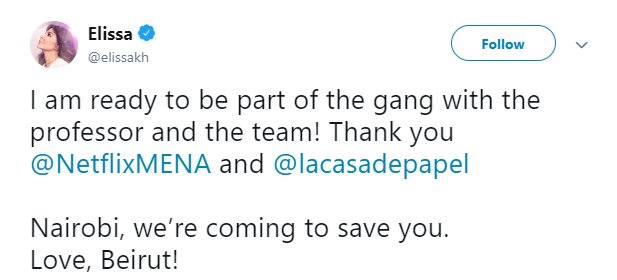 The evergrowing fanbase of La Casa De Papel (Money Heist) in the Arab world was freaking out after a tweet by Lebanese superstar Elissa sparked a controversy! The Lebanese Queen tweeted that she’s ready to be a part of the gang with the professor and the team, thanking Netflix Mena and La Casa de Papel. She then said that she’s going to save the fan-favorite Nairobi.