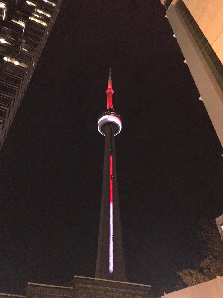 On Saturday, Canada’s CN tower also lit up with the Egyptian flag colors in tribute to the innocent lives that were lost.