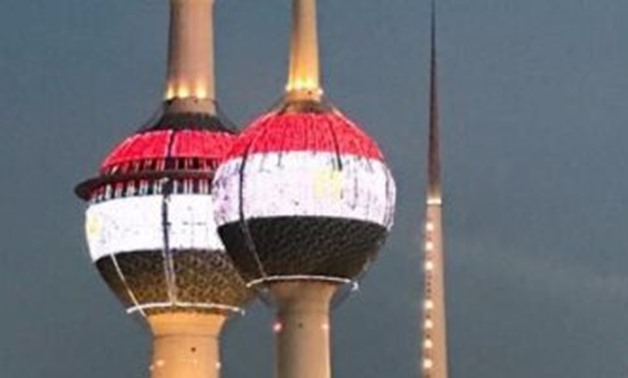 Kuwait Towers were seen illuminated in the colors of the Egyptian national flag. Kuwait asserts its support to the Egyptian leadership and people in their battle against terrorism.
