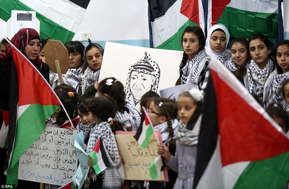 Children were also present, holding flags and a picture of the late leader Yasser Arafat!