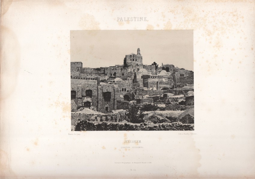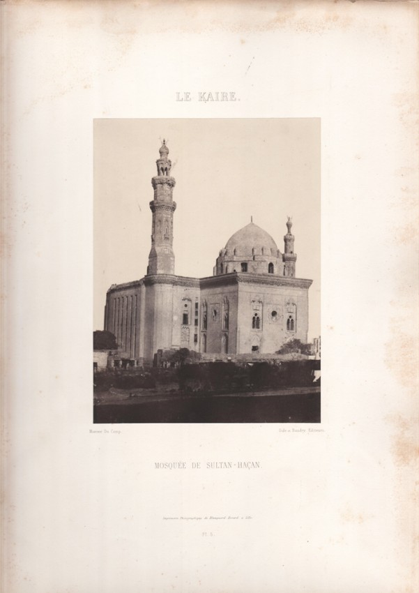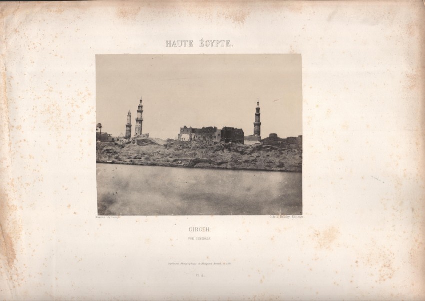 “The author made an archaeological expedition to the Middle East under the auspices of the Ministry of Public Instruction, leaving France at the beginning of November 1849 accompanied by Gustave Flaubert. Throughout the tour Du Camp used the calotype process as modified by Blanquart-Evrard, an after his return in 1851 published a selection of 125 photographs, with short descriptions. A narrative of the tour was published separately but without the illustrations in 1853,” Gernsheim continues.