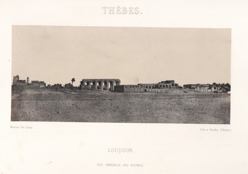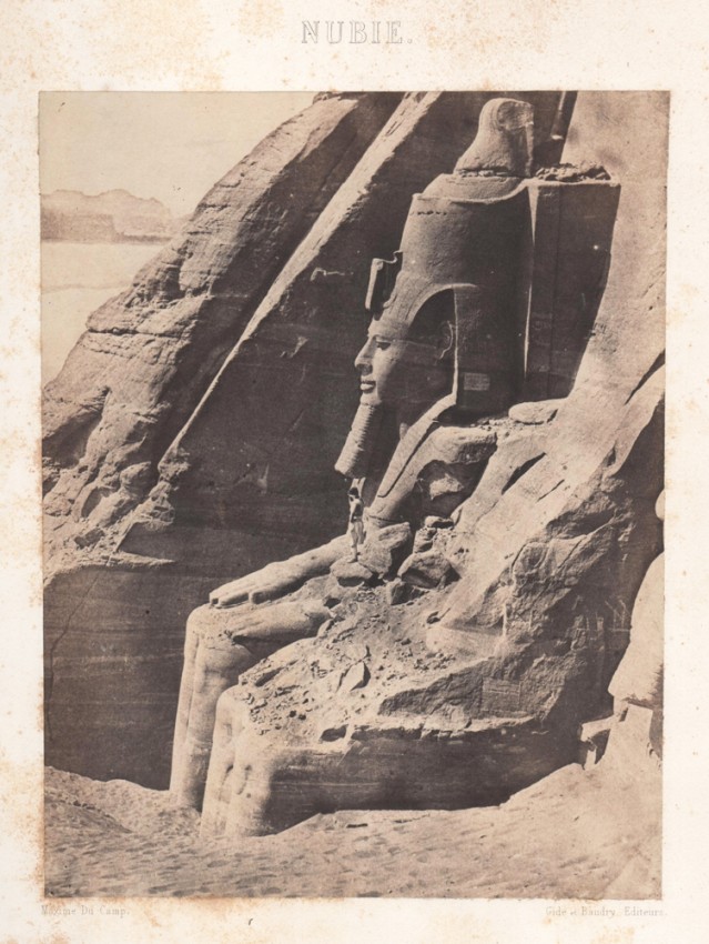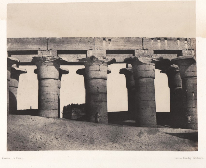 Du Camp actually carried developing chemicals with him so he could develop his prints on the road (er, in the desert). His friend Gustave Flaubert, who had yet to write Madame Bovary, accompanied him, and the two of them had quite an adventure, if excerpts from their diaries, printed in “Flaubert in Egypt,” are to be believed.