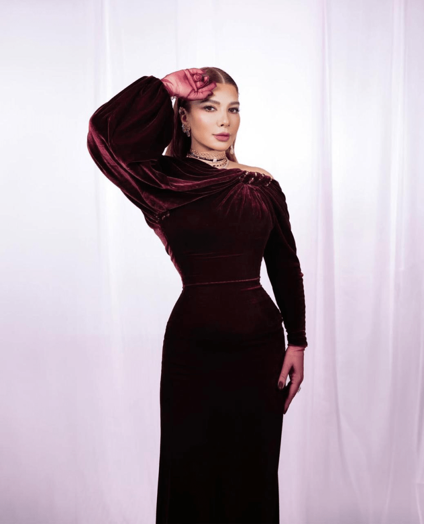 Crowned Favorite Female Singer at the Joy Awards 2025, Assala stepped onto the lavender carpet in a velvet Nicolas Jebran gown that felt equal parts regal and commanding. The deep wine hue amplified velvet’s natural gravitas, while the cinched waist carved a sculptural silhouette. An asymmetrical neckline and dramatic sleeve added controlled theatricality, proving that velvet, when expertly cut, doesn’t overwhelm—it defines. The look matched the moment: celebratory, authoritative, unforgettable.
