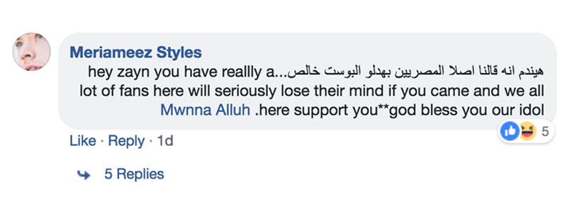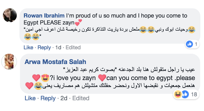 Former boy-band member, Zayn Malik, has been making waves since his departure from One Direction. His latest hit song, Let Me, was released a week ago, making its way to the top of the iTunes charts. Apparently, stats showed that a huge percentage of listeners were from Egypt, so Zayn decided to show some appreciation to his Egyptian fans. However, what grabbed our attention was how they responded!